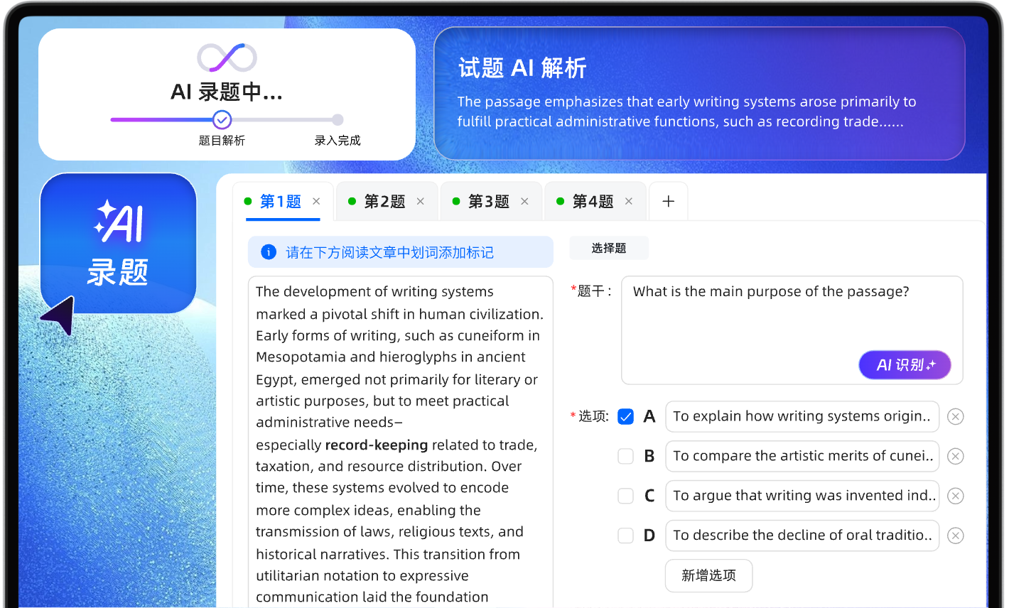 与解析大幅降低教师工作负荷,评分与反馈自动完成,批改效率显著提升,教学质量、考试出分与学员满意度同步提升。